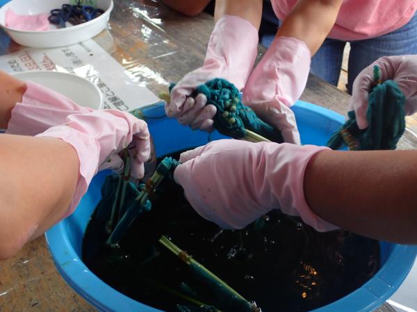 初心者の方を対象に、種から育てたタデアイの葉を収穫して生葉染めを体験していただきました。