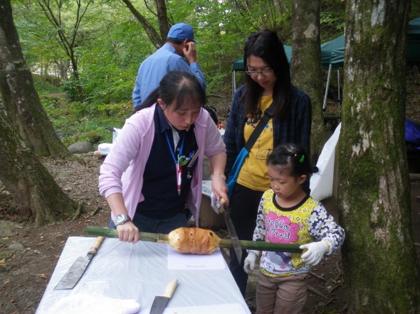 秋の県民の森で自然の素材を使った「アウトドアクッキング」や、自然を満喫する「ガイドハイク」を体験していただきました。