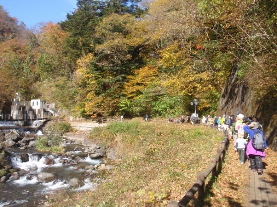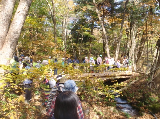 尚仁沢湧水群を目指して自然観察をしながら紅葉の中ハイキングしました。
