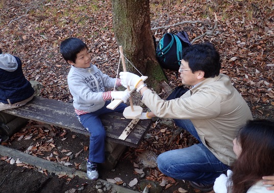 縄文人の生活を学びながら火おこし体験をし、 森でたき火を楽しみます。 (大人の方のみでの参加も歓迎です。) |
