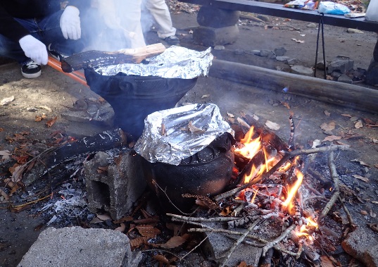また、持ち寄ったお芋などを焼いたりして、縄文時代(人)の生活を学んでいただきました。