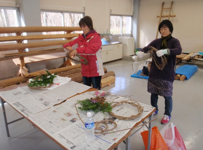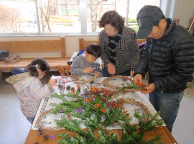 | 日程 | 午前9時00分 受付 森林展示館 午前9時15分 オリエンテーション 森林展示館 午前9時30分 材料採取(つる伐り)、移動(各自の車) 県民の森地内 午前10時15分 移動(各自の車)、作り方説明、クリスマスリース作り 木工体験館 午前12時00分 閉会、アンケート 木工体験館 |
