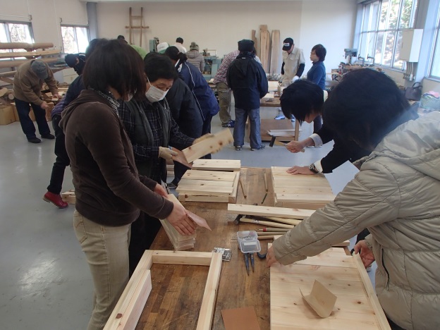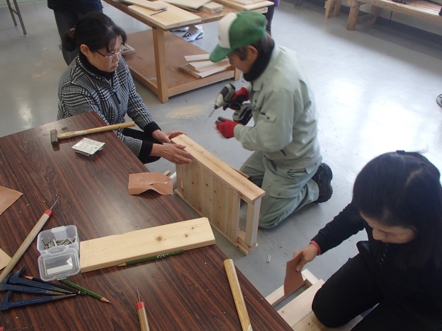 今回は棚か縁台、どちらかを作って頂きました。24名の方にご参加頂きました。