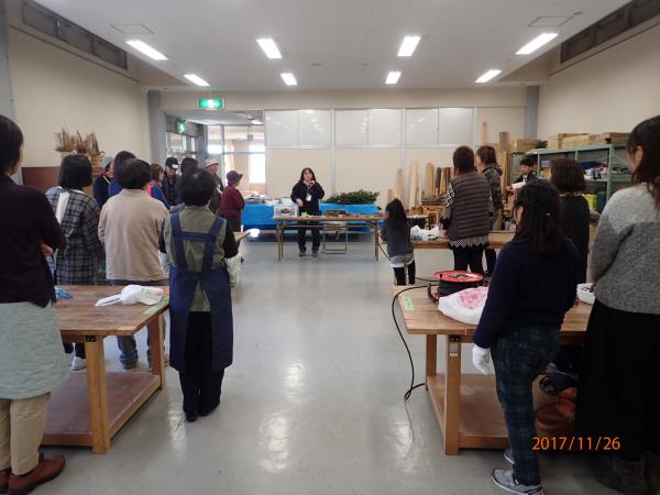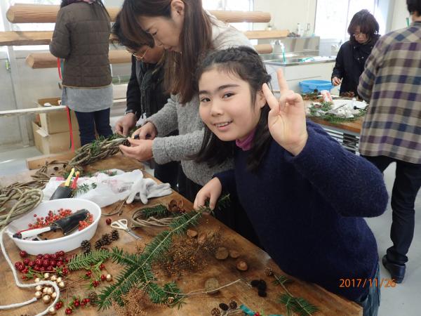 | 日程 | 午前09時30分 受付(森林展示館) 午前09時45分 オリエンテーション(森林展示館) 午前10時00分 作り方説明、クリスマスリース作り(木工体験館) 午後12時00分 閉会・アンケート(木工体験館) |