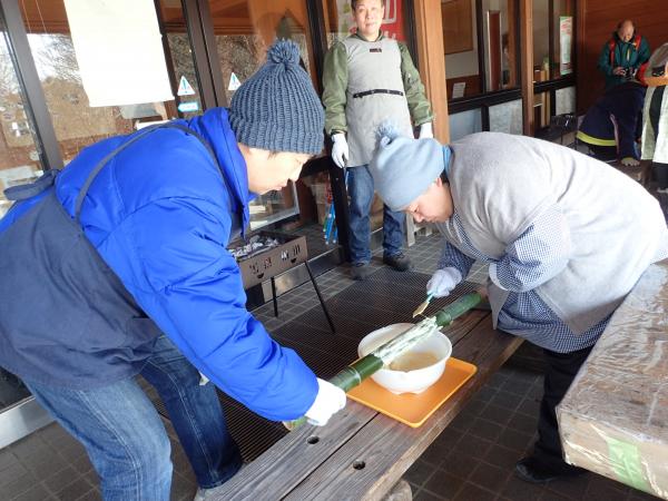 | 内容 | 竹に生地をつけて、炭火でなん層にも焼き上げます。※午前・午後各1回開催、各回6組25名程度 |