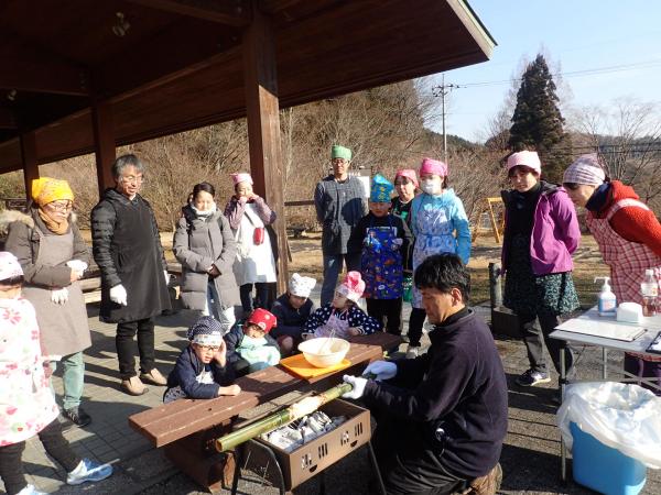 | イベント名称 | 竹を使ってバウムクーヘンを作ってみよう!(アウトドアクッキング) |