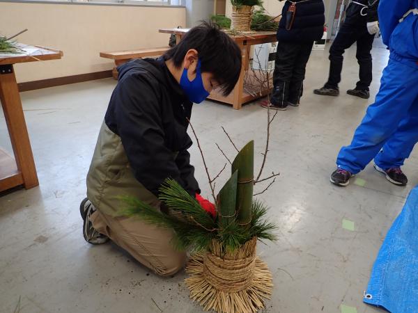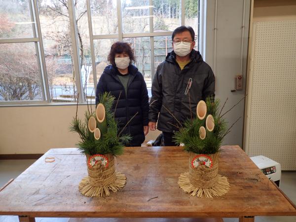 内容 竹、松の葉、梅の枝を使い、ミニサイズ(W18×D18×H60)の門松を作ります。※一組様2柱まで作成。
