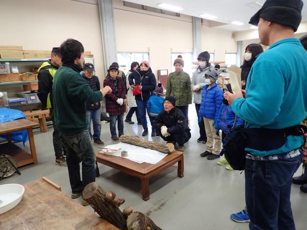 | 日程 | 午前10時00分 受付(森林展示館) 午前10時15分 オリエンテーション(森林展示館) 午前10時30分 シイタケについてのお話(森林展示館) 午前11時00分 駒打ち体験(木工体験館) 午前12時00分 シイタケ調理・試食会(森林展示館) 午後01時00分 閉会・アンケート(森林展示館) |