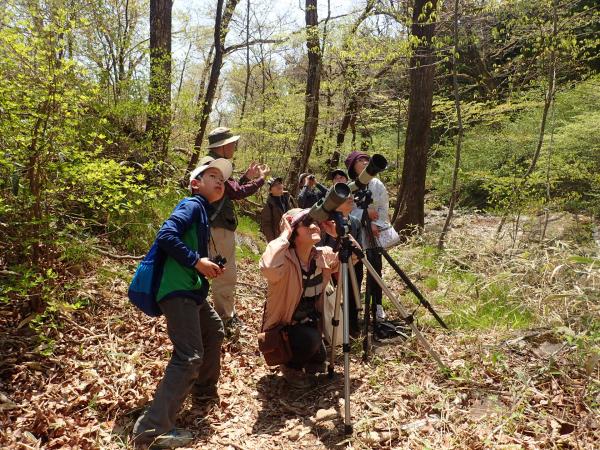 バードウォッチングのコツを学習した後、夏鳥たちの声で溢れる森を歩いて野鳥観察しました。