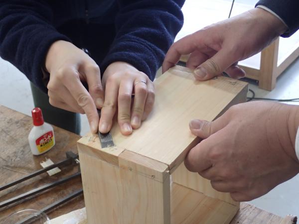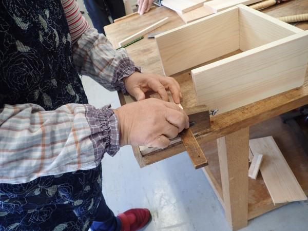 | 内容 | 釘などを使わない、木組みの木工品を作りながら手工具の使い方や木工についての基本を学んでいきます。 |