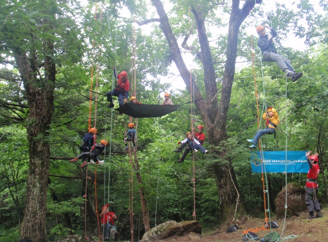 ツリークライミング専用のロープや安全保護具を使って木に登り自然との一体感を味わっていただきました。