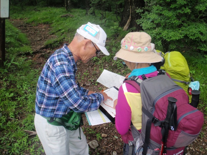 地図と磁石の使い方を学習した後、パーマネントコース(約9?、標高差約370m)でオリエンテーリングを体験していただきました。
