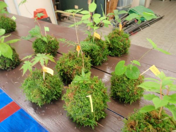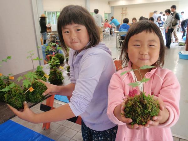 自然観察と森の恵みであるコケを使った苔玉づくりを行います。 1人一つ200円 |