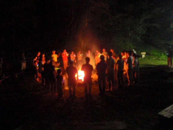 県民の森キャンプ場に宿泊してキャンプファイアと早朝ウォーキングを行いました