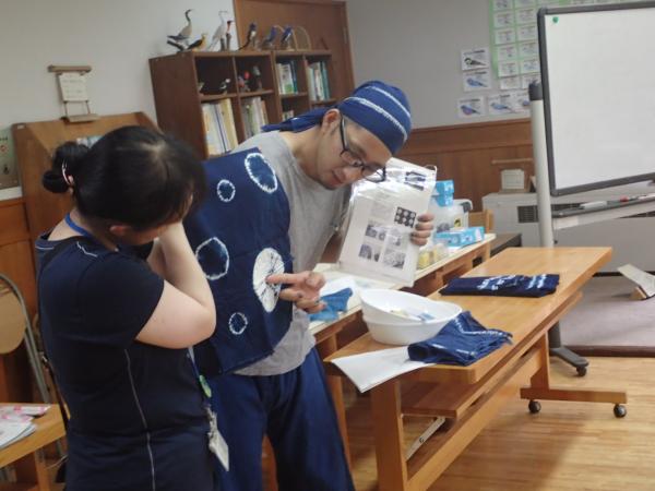 | 内容 | 絞り染めを中心とした講座を受講していたのち、タデアイの葉で生葉染体験をします。 |